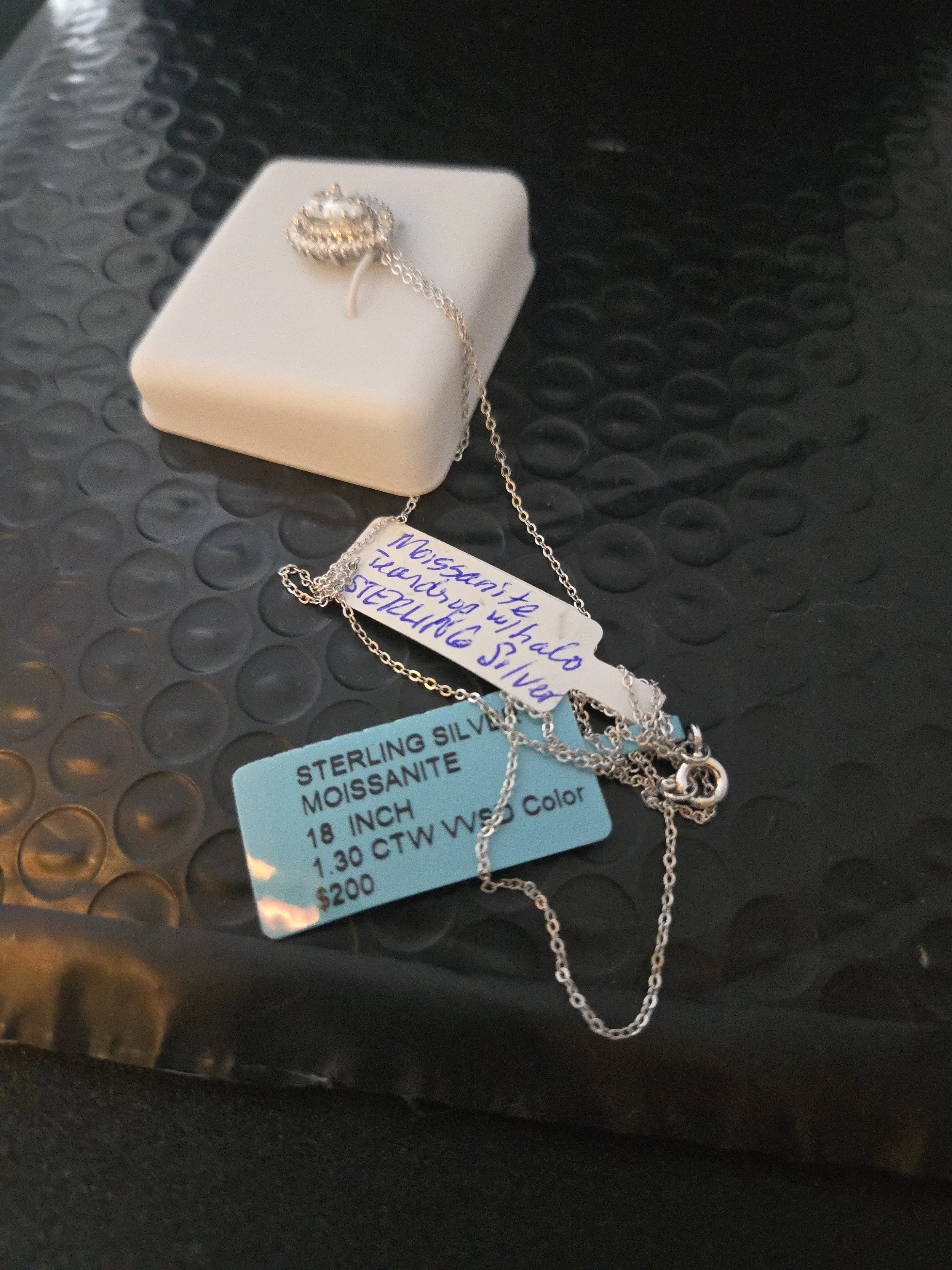 Sterling Silver Moissanite heart necklace Sale Price: $100.00 Original Price: $200.00 Sale Rose Dahlia Turquoise ( Dyed ) necklace Sale Price: $325.00 Original Price: $350.00 Sale Gucci link sterling silver chain $52.00 Gold over sterling silver Twisted Rock chain $60.00 Sterling silver moissanite teardrop pendant and chain. $130.00 Sterling Silver Franco style design 20 inch chain brand new $48.00 Sterling Silver 1 inch moissanite pendant and necklace Sale Price: $230.00 Original Price: $300.00 Sale Sterling Silver Moissanite men's ring $135.00 14KT gold over Sterling Silver 3 carat moissanite pendant and chain necklace Sale Price: $250.00 Original Price: $450.00 Sale Sterling Silver Green Turquoise pendant made in Mexico $150.00 Black rhodium over sterling silver $ dollar sign pendant $35.00 Sterling Silver Ruby ring Sale Price: $325.00 Original Price: $350.00 Sale Moissanite bracelet Sterling silver Sale Price: $400.00 Original Price: $799.00 Sale Larimar Pendant set in Sterling silver $65.00 Moissanite earrings Sterling Silver Sale Price: $150.00 Original Price: $300.00 Sale 14KT gold over Sterling silver Designer Koreana $30.00 14KT gold over sterling silver Bismark bracelet. $35.00 Sterling silver Jesus pendant $45.00 Designer ring Sterling silver Sale Price: $125.00 Original Price: $175.00 Sale 6.5 inch 14kt gold over sterling silver bracelet $25.00 Pink Sapphire Mother and child pendant Sterling silver $55.00 Sterling Silver chain made in Italy $43.00 Pietersite stone hand wrapped in Sterling silver wire $45.00 Amethyst pendant Sterling silver $45.00 Ruby Zoisite pendant Sterling Silver bail Sale Price: $50.00 Original Price: $75.00 Sale Large Taxco Mexico cross Sterling silver $40.00 Botswana banded agate pendant Sterling silver $125.00 Large Lake Superior Agate set in sterling silver bezel full back, is a brooch/pin and pendant measures 2x2 inches $65.00 Rainforest Jasper pendant Sterling silver $175.00 Large carnelian agate modern pendant Sterling silver $170.00 Raw aquamarine pendant Sterling Silver Sale Price: $45.00 Original Price: $65.00 Sale Thulite Pendant pink and white Sterling silver $75.00 Fordite pendant Sterling silver $120.00 Large Larimar Sterling Silver pendant $250.00 Sterling silver Rainbow Obsidian Pendant Designer DTR Jay King $300.00 Sterling Silver Ruby ring size 6.75 and matching earrings set $175.00